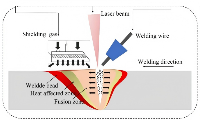 Trådmatingssveisen minimerer den varmepåvirkede sonen og reduserer forvrengning og gjenværende stress, f.eksmuliggjør dyp penetrasjon, og tfylltråden kan bidra til å foredle mikrostrukturen til sveisemetallet. (Trådmatende sveiseprøve som referanse)