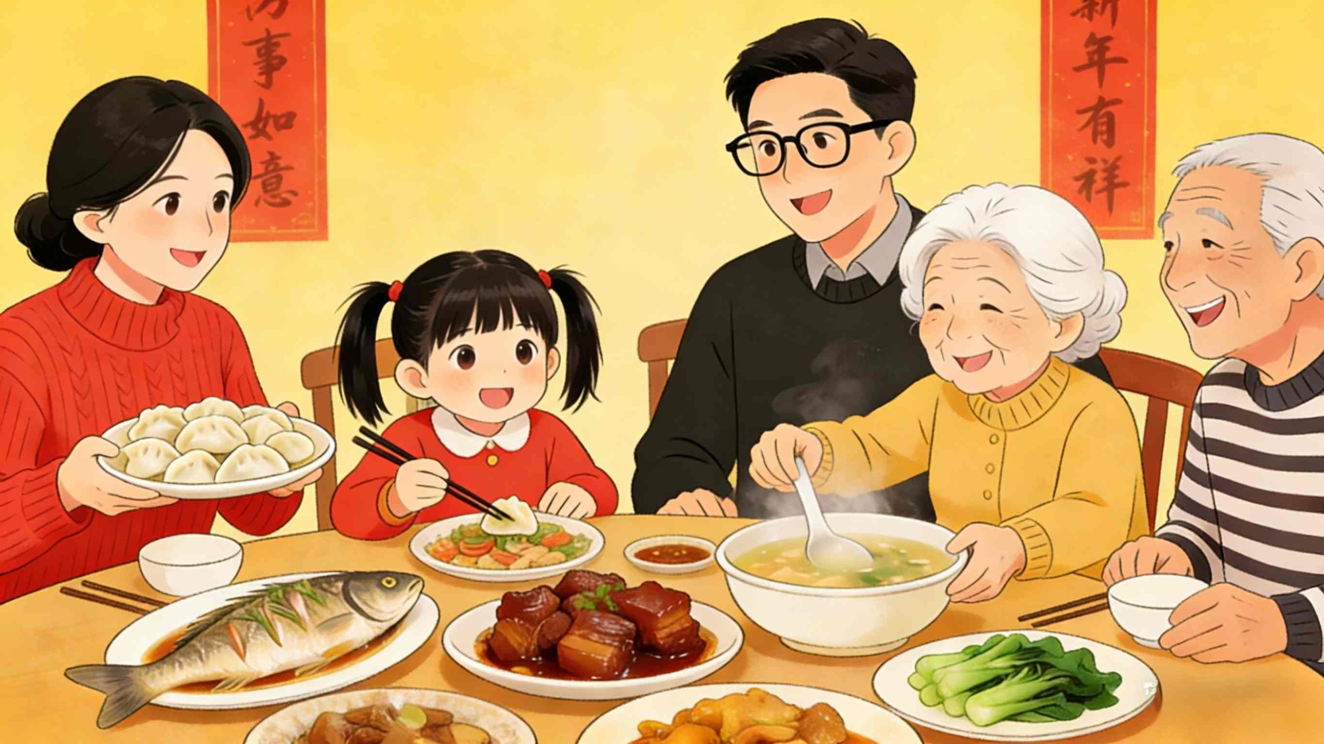 Om kvelden 30. januar, årets siste dag i den kinesiske kalenderen, samles familier til en gjenforeningsmiddag, og deler varme og glede i hverandres selskap.