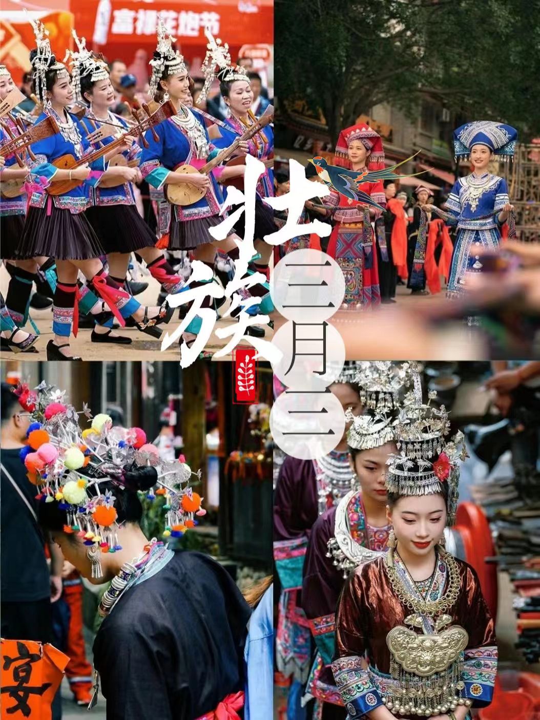 Å synge folkesanger, vise frem tradisjonelle kostymer, trommer, danser og fester på en langbordsbankett – flere og flere tradisjonelle aktiviteter vil finne sted fra den tredje dagen i den tredje månemåneden til 19. april i 2026 i Guangxi.