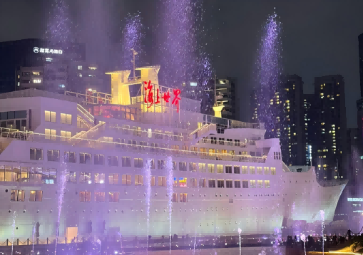 Hvorfor gå:Historisk Minghua cruiseskip forvandlet til serverings- og underholdningssenter. Barer ved vannet, levende musikk og Sea World Culture & Arts Center.